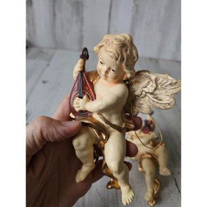 Vintage hanging cherub angel baby musical banjo Xmas Nativity statue religious decor