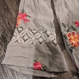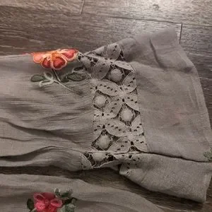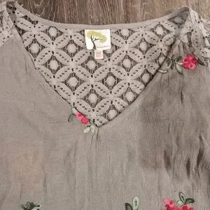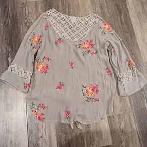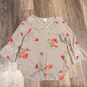 Beautiful Boho style, lace, floral, and embroidered Fig and flower tie front top. Fig and flower is a brand associated with Anthropologie