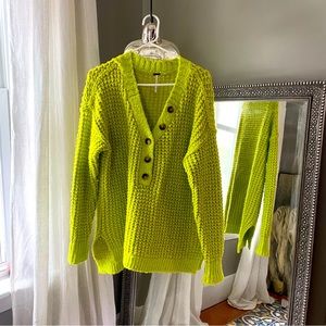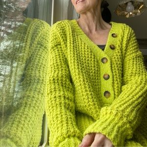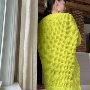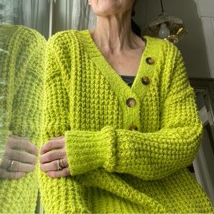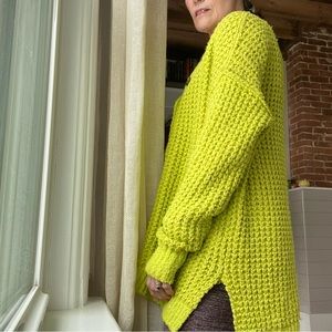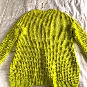 Oversized, comfy, soft! Super cheery cool yellow. The perfect throw on sweater for cool walks or curling up with a book! Size small, worn once- euc
