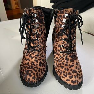 Lace Up Heeled Leopard Hiker Boots
