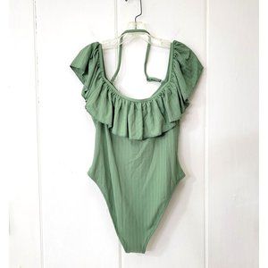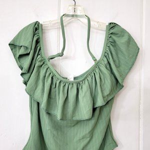 Cupshe Ruffled Green One Piece Bathing Suit Size XL New with Tags