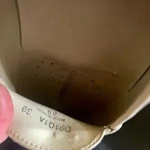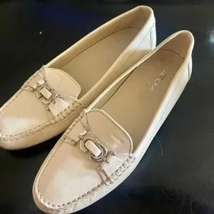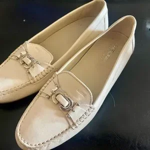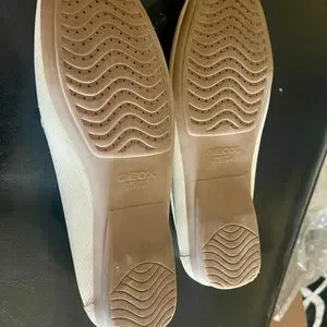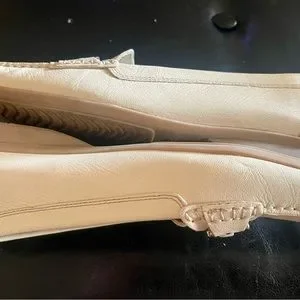 My foot changed after pregnancy, never worn. Ivory leather GEOX brand loafers, I bought these retail because I thought the full sole was better & would be longer lasting than the NOBBY driving sole shoes.