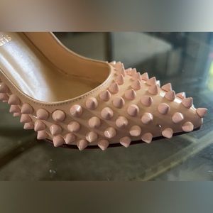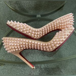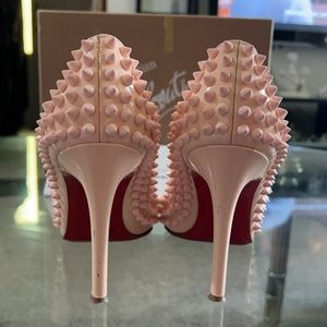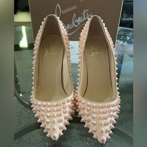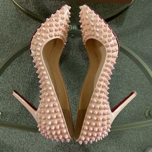 Christian Louboutin Peach Patent Leather Pigalle Spikes Pumps