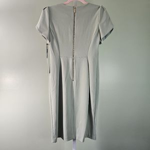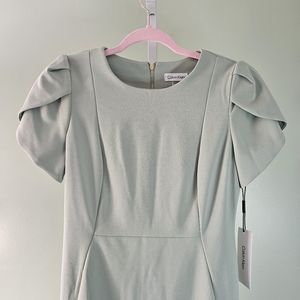 Calvin Klein Crew Neck Short Tulip Sleeve Solid Sheath Stretch Dress Sage Green
