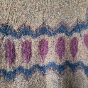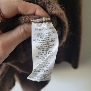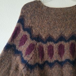 Sleeping on Snow brown sweater. Very flowy with bell sleeves. Marked size large. Good condition. No holes or stains. Mohair and wool blend. Very soft. Pattern has a sparkly yarn mixed in. See photos.