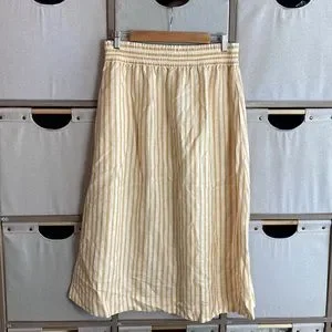 Madewell smocked waist striped linen blend midi skirt
