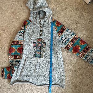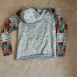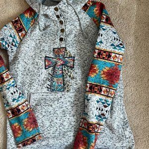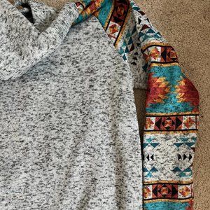 Gray & Aztec Print *Hallelujah* Hoodie | Heather Gray | Kangaroo Pocket | Size L