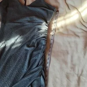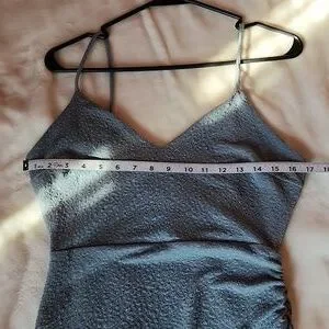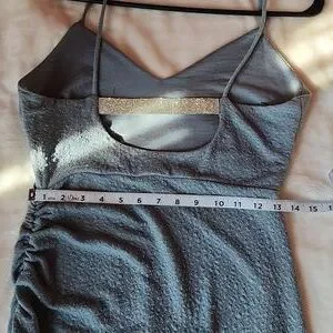 Women's Junior Size Large, Windsor Sparkling Blue with Ruched Side Part & Slit with Peekaboo back Rhinestone Detail Dress.