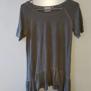 Dantelle Women's Gray Short Sleeve Tunic Top size S. raw edges. Boho ,festival, gypsy