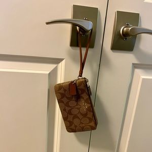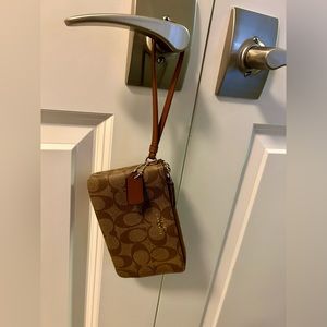 Coach Wristlet in Signature Canvas.