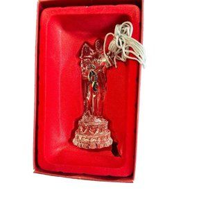 This stunning Lenox Crystal ornament features a beautiful Bride and Groom design, perfect for Christmas or any special occasion. The clear crystal material and hand-blown glass production technique create a contemporary and unique feel. This limited edition ornament comes in its original box and is a must-have for any collector of ornaments or Lenox brand items. Its small size and hanging feature make it a versatile addition to any holiday decor.