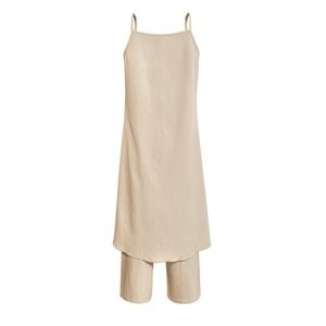 High-Low Spaghetti Strap Layered Flowy Top and Pants Set. Perfect for a Spring or Summer Vacation!