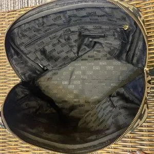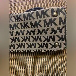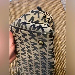 This is a very spacious bowling satchel with the iconic MK pattern. When you unzip it you can fit a massive amount of stuff in here! Black and beige with black leather handles. There is some wear on one corner of the bag as shown in the pictures. The rest is in perfect condition. Interior is immaculate. I believe it retails for $400.