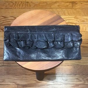 HOBO International Ruffle Envelope Black Leather Clutch Purse