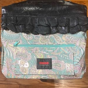 HOBO International Ruffle Envelope Black Leather Clutch Purse Good Condition