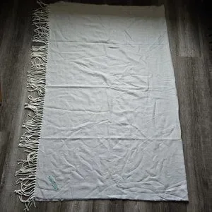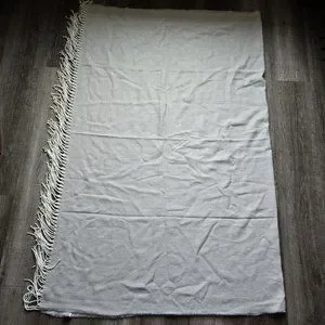 The Blanket is folded in half in the photos. There is fringe on both ends.