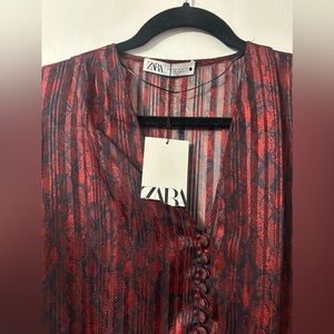 ZARA Sheer Snakeskin print blouse with cuffed sleeves