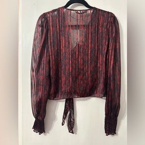 ZARA Sheer Snakeskin print blouse with cuffed sleeves size M