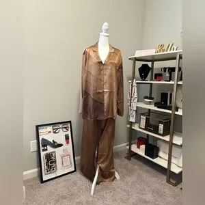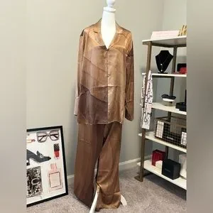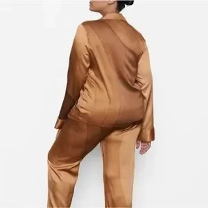 Skims Silk Nude Print Button Front Pajama Top NWT 2X Nude print / Collar, front pocket, Buttons all the way down
