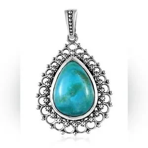 This pendant features Pear shaped bezel set in a stunning Sterling Silver mounting.