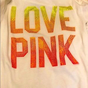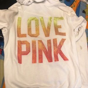 Rare/H2F VS PINK hooded sweatshirt which has a pink/orange bling dog on front, full zipper w/pockets & the back says LOVE PINK in ombré sunset bling rhinestones!