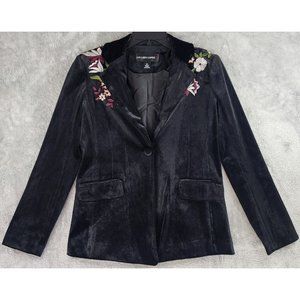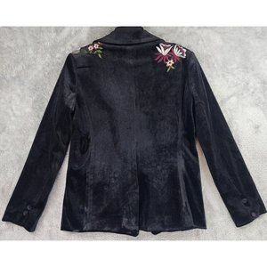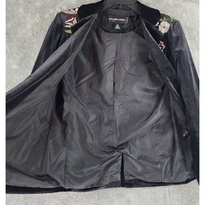 Colleen Lopez Jacket Womens Extra Small Black Velvet Floral Embroidered Blazer