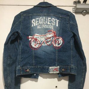 VINTAGE REQUEST PRINTED JEANS JACKETS SIZE M