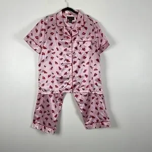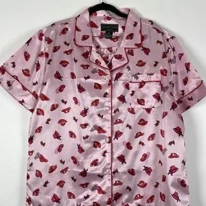 Robert Louis silk blend loungewear drawstring waist short sleeve button down pajama set Size X-Large.