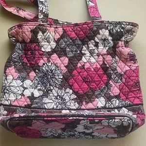 Vera Bradley retired mocha rouge shoulder bag pink, brown, white floral pattern