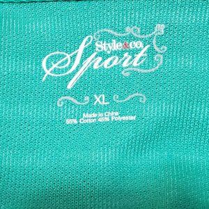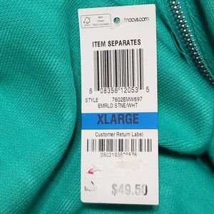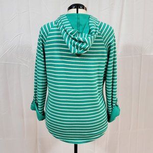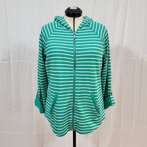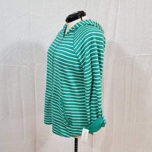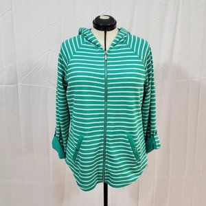 NWT Women's XL Hoodie Style & Co Sport Green White Stripe Zip Snap Pocket Sleeve