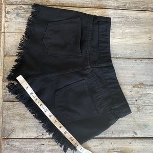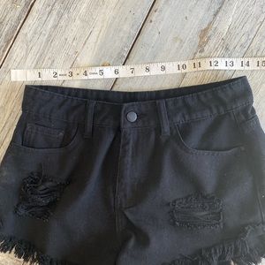 Size small black denim shorts with distressing