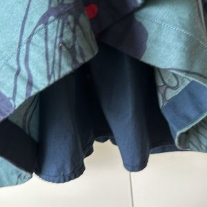 Pretty deep green and navy modern floral print. 100% cotton. Double V neck. Fully lined. Back zip. Shoulder to hem - 40.5" Shoulder to V-9.5"