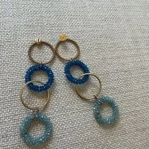 Bold multi hoop blue earrings with original hardware. Worn once. Wear to brunch or date night.