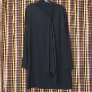 Tibi Navy Silk Tie Neck Dress Sz 10