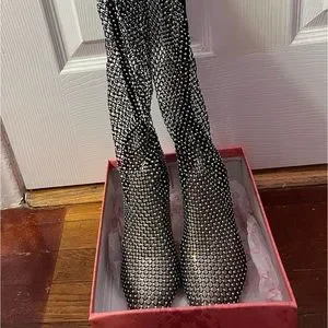 Ego Official Multi Colour Diamanté Fishnet Over The Knee Thigh High Black Boots