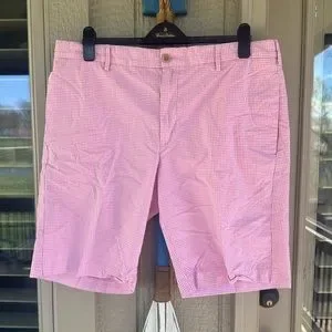 IZOD Men’s All Cotton Pink & White Gingham Flat Front 10” Shorts - Size 38