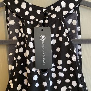 NWT Kara and Kate halter dress, black with white dots. Elastic and tie waist. 2 button closure at neck with key hole.