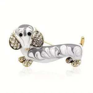 Dachshund Weiner Enamel Dog Rhinestone Brooch Pin Stylish Sparkle Hot Dog Doxie