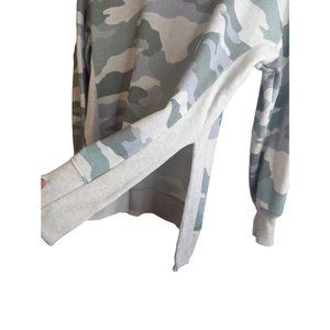 Aerie Women's Good Vibes Oversized Side Slit Casual Sweatshirt in Gray Camo SzXS
