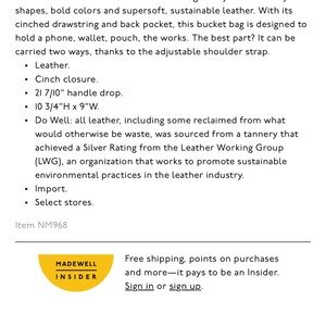 NEW Madewell The Piazza Bucket Bag Jade Green