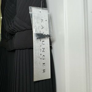 NWT Kay Unger Beaded Pleated V Neck Cocktail Party Event Midi Dress Black 10