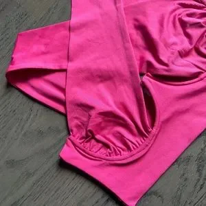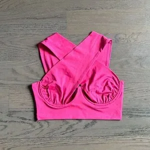 -Crossover design with center cut-out detail