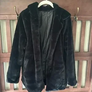 Soft Faux Fur Black Hooded Coat