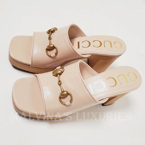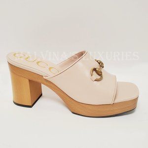 GUCCI SHOES HOUDAN WOOD PLATFORM LEATHER MULES w HORSEBIT sz 39 9