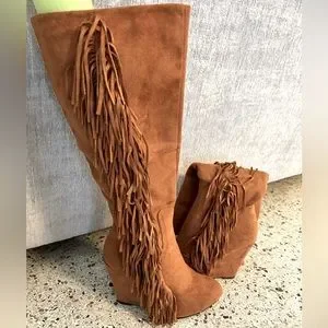 Fringe knee high boots