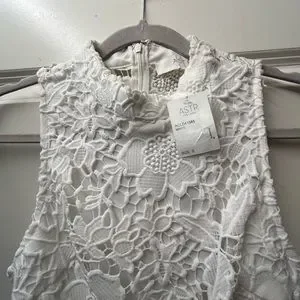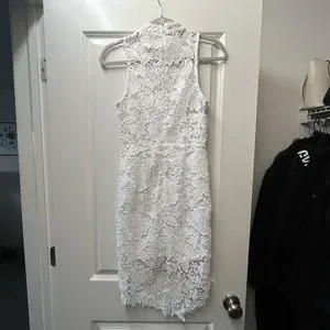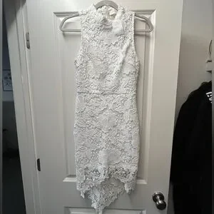 Never worn, beautiful white, sleeveless dress. This stunning floral piece has a nice slim fit with a slight tail that flows in the back.