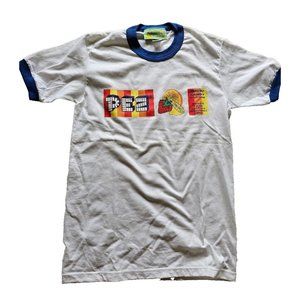 Vintage In Vitro Ringer Tshirt, Ringer Tee, PEZ, Blue & White, Size Small