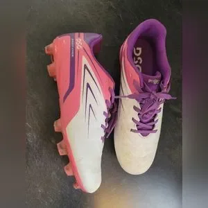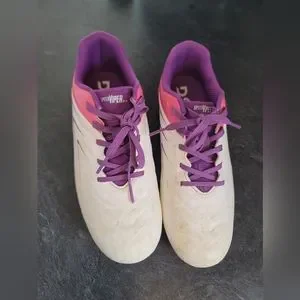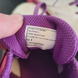 good, used condition - worn to a few soccer practices, lots of life left in these cheats. dick's sporting good brand. girls youth size 5.