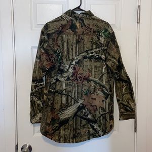 Like new! No wears. Men's browning button up camo shirt. Fully functional buttons with front pockets. Thick material but is not lined. Size medium. This does match the browning pants listed. Would be willing to a deal for both
