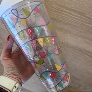 NWOT happy birthday colorful clear tumbler 24oz